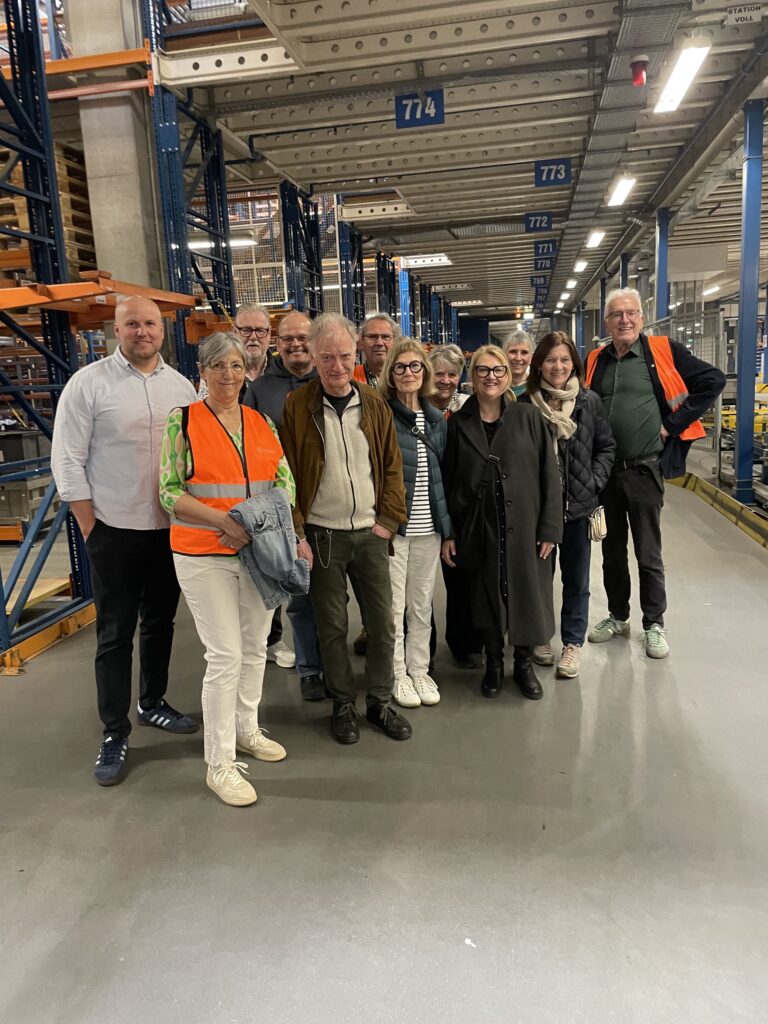 Ein Dutzend Grüne wurde am Mittwoch 15.4.2026, vom Standortchef Tim Henning zweieinhalb Stunden bei laufendem Betrieb durch Teile des Riesenlagers an der Giesserstraße geführt. Mit 492.000 qm Fläche dürfte es