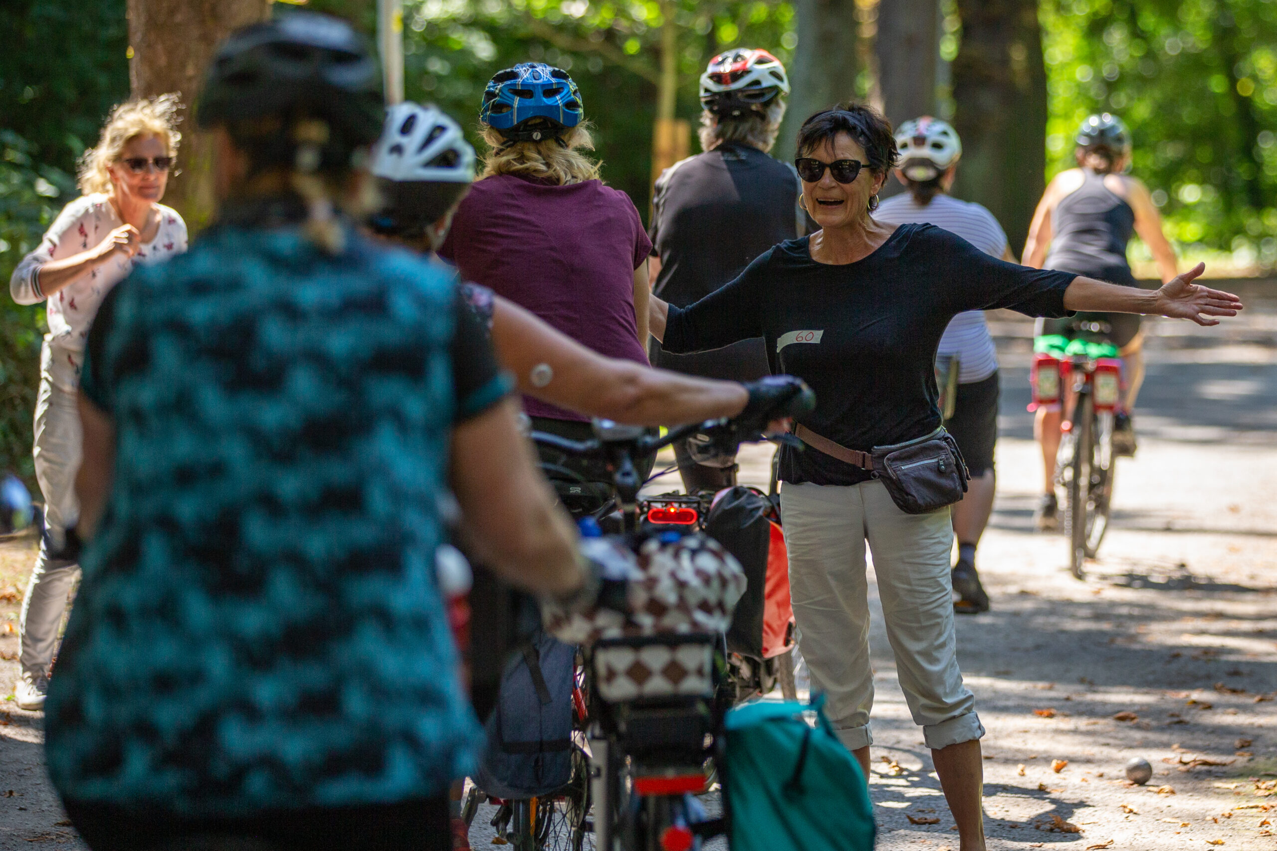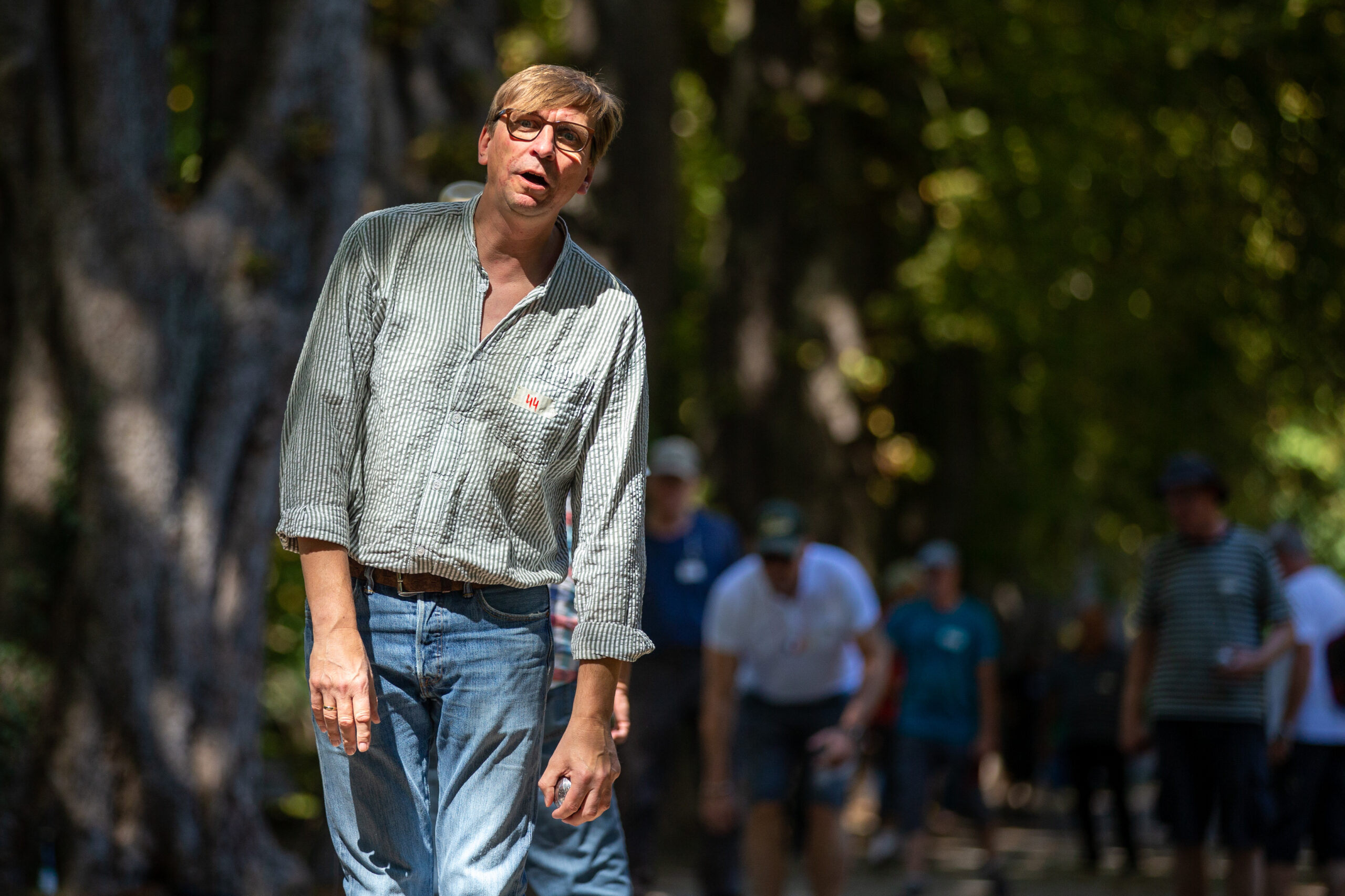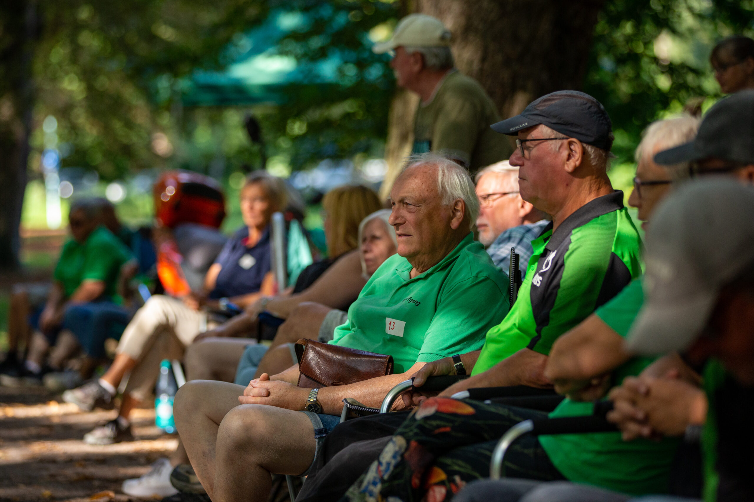 Beim ältesten Boule-Turnier der Region ging es aber nicht nur um Siege – oder gar um Geldpreise, wie bei immer mehr Boule-Turnieren. Bei den Green-Open gibt es seit immer gestaltete-T-Shirts, Ökosekt und Applaus für die Gewinner*innen. Der neugierig-freundliche Austausch auch jenseits des Kugelspiels macht den Charme aus. So bekam Jörg Lenz das Greenhorn-T-Shirt als bester Neueinsteiger des Jahres, sonderetikettierte Grünkäppchen-Öko-Pikkölöchen und Sonnenblumen wurden nicht nur an die vielen Helfer*innen verteilt.