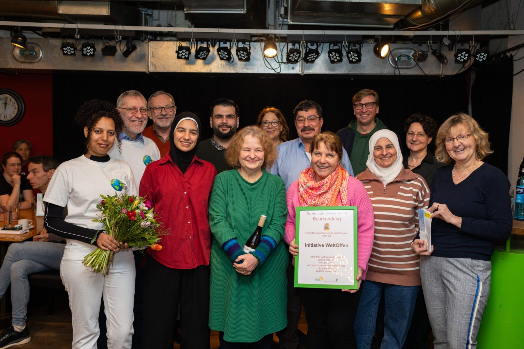 Elias Nassour, selbst Geflüchteter und inzwischen ein echter Unnaer, hielt die erste Laudatio auf die Initiative WeltOffen. Er sprach bewegend über seine eigene Geschichte und die Bedeutung der Initiative: „WeltOffen gibt Geflüchteten nicht nur ein Dach über dem Kopf – sie schenken Hoffnung, sie geben ein Zuhause.“ (Die ganze Laudatio:laudatio weltoffen )Gleichzeitig nutzte die Initiative den Moment, um auf ihre schwierige finanzielle Lage aufmerksam zu machen. „Unsere Arbeit ist bedroht. Wir brauchen Unterstützung, damit wir weiterhin für Vielfalt und Miteinander eintreten können,“ so ein Sprecher.